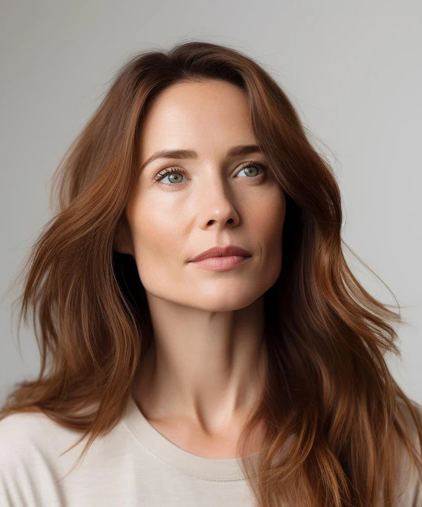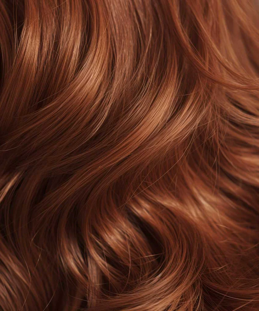 Cobre cálido con matices rojizos, cobertura total de canas y acabado brillante y saludable